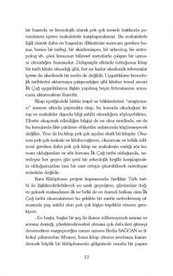 Elinizde tutmakta olduğunuz kitap, yazarının “Kara Kütüphane” adını verdiği bir internet bloğunda yayınlanmış, üç senelik geçmişi olan bir yazı dizisinin akademik makalelerle birlikte incelenmiş, eklemeler yapılmış, yenilenmiş ve düzeltilerek makale niteliği kazanmış son hâlidir. Okuyucuya kitap içeriğinde vaat edilen şey, “tarihi irdeleyen kitapları irdelemek” ve bu doğrultuda kuvvetli tezlere dayanan bir varsayımlar tarihi oluşturmaktır.